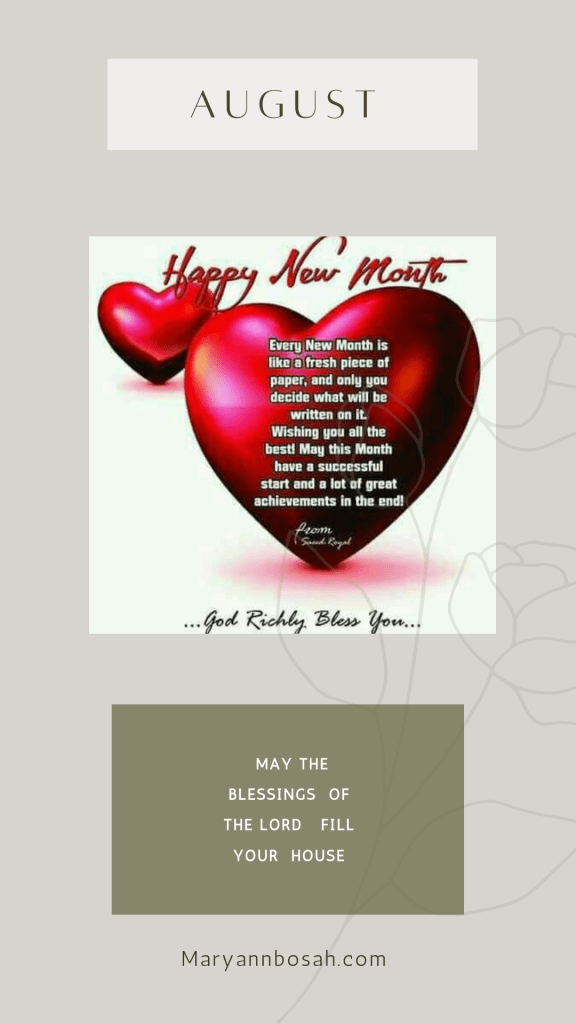 May August be filled with the blessings, peace and grace of our Lord Jesus.